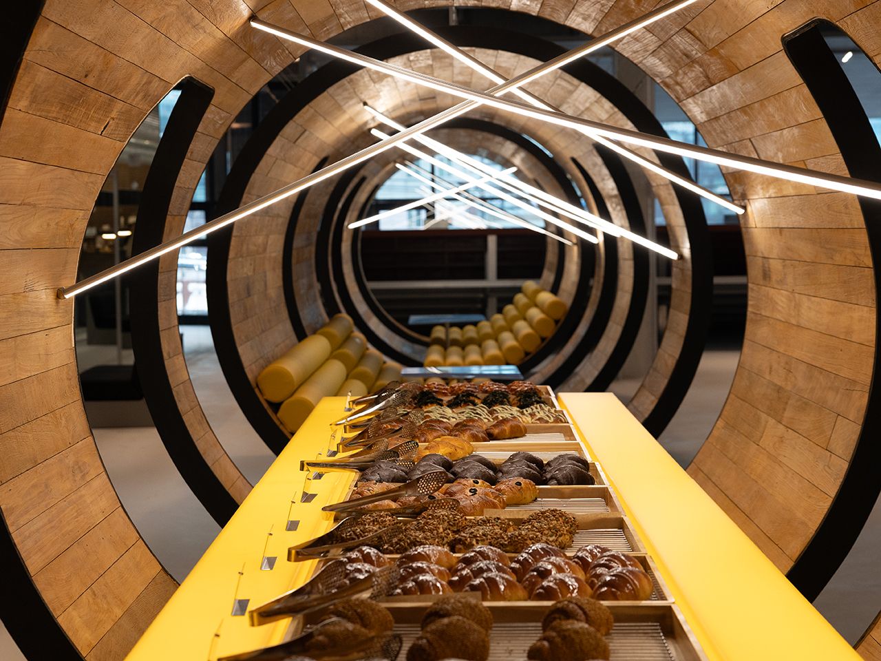 左側の入口が3階カフェと4階屋上に行く入口で、3階のカフェのデザートコーナーは塩パンがほとんどでした。4階もガラス張りになっているところが多いので、フォトスポットとしてこれから有名になっていきそうです。