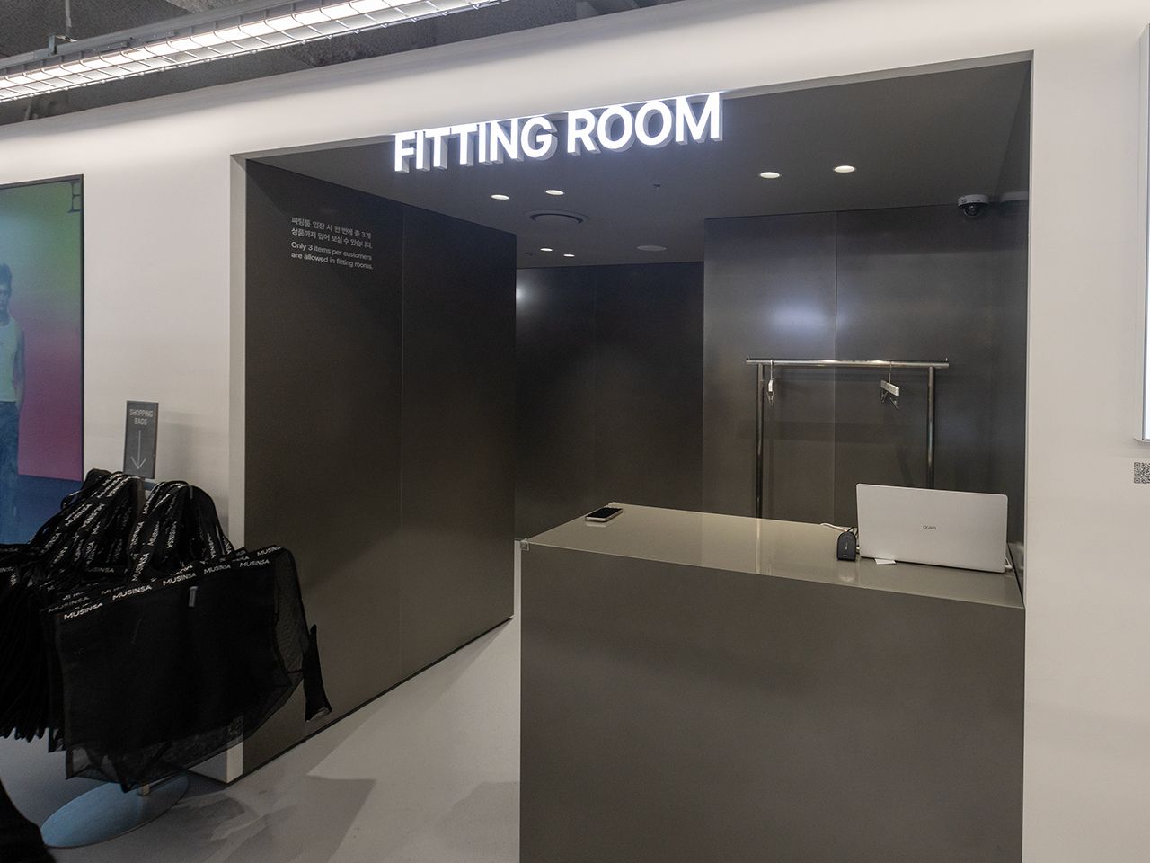 地下1階から地上3階までの全4フロア、約300坪規模の大型店舗です。外国人観光客が多い立地を反映し、入店ブランドの8割以上を韓国国内ブランドで構成し、各商品のタグに付いたQRコードを読み取ると、リアルタイムで在庫状況や商品レビューなどが確認できます。
