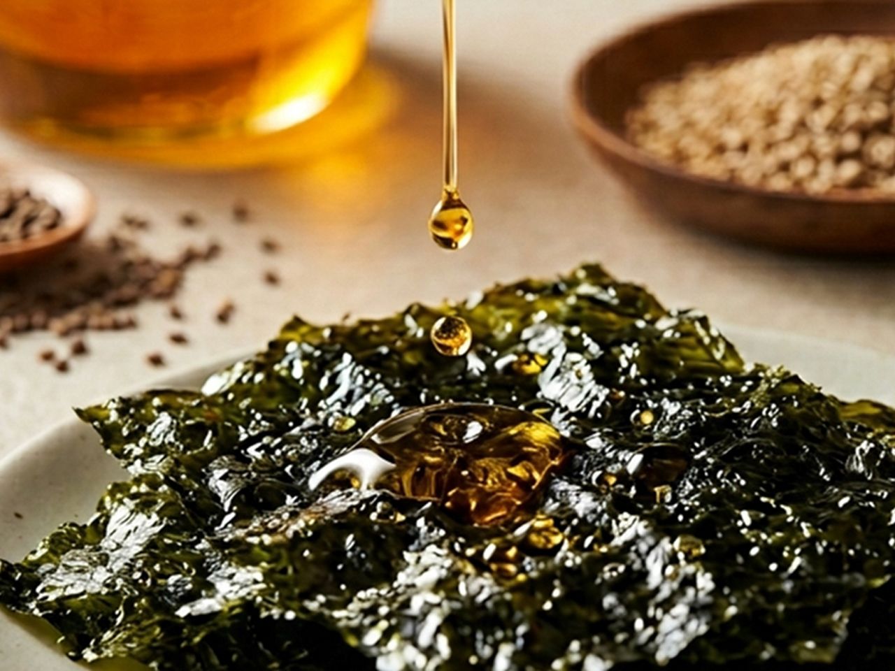「カウォンオットル海苔」では使用する油にもこだわっており、搾りたてのごま油とエゴマ油を独自の配合でブレンドすることで、豊かでコクのある香ばしさをプラス。