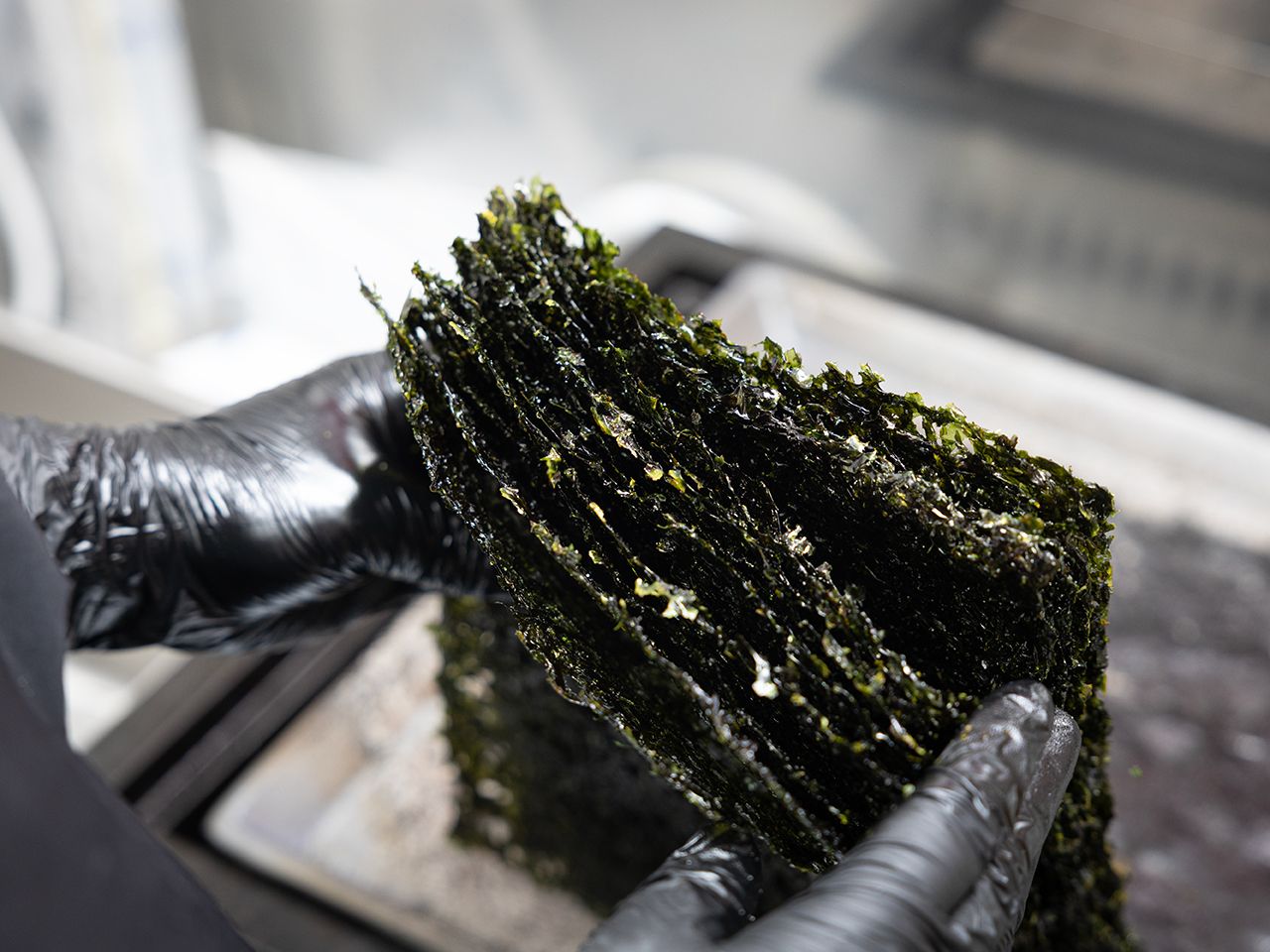 「コプチャン岩のり」は、1年のうちごく短い期間しか生産されない貴重な海苔で、表面が