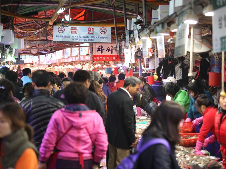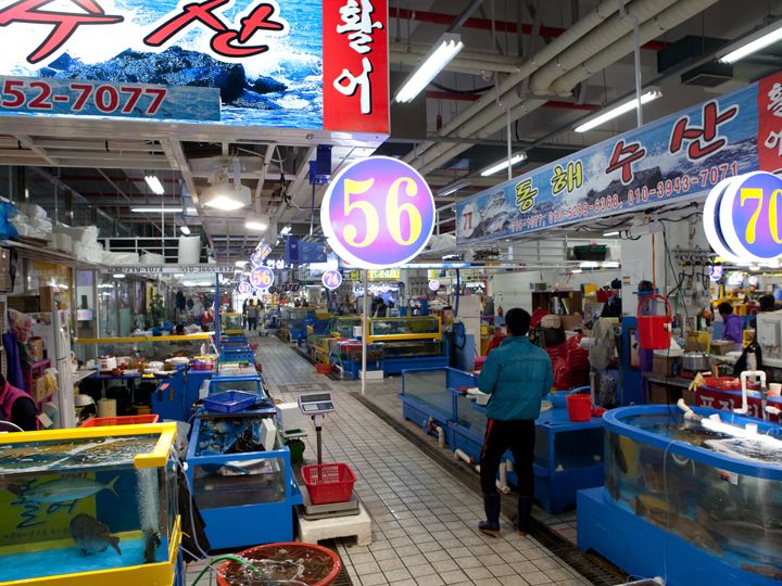 仁川市の南東部に位置、活気あふれる水産市場