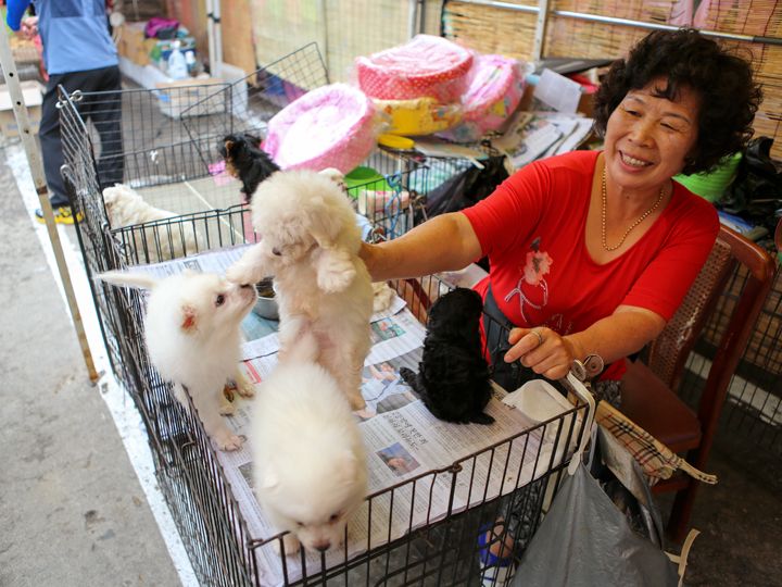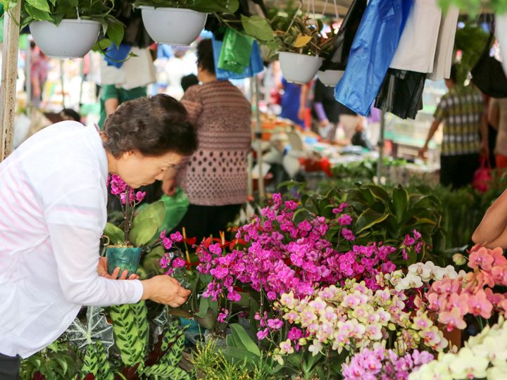 花、穀物、野菜、果物、魚、肉、餅、お菓子、衣類、日用品を始めペット用の子犬•子猫などの動物や、食用の鳥や犬も販売されています。この辺りには食用犬を使ったボシンタンという料理のお店も沢山あります。精がつくと昔から食べられている犬鍋です。他の市場や観光地では恐らく食用犬もボシンタンのお店もなかなかお目にかかれないかもしれません。