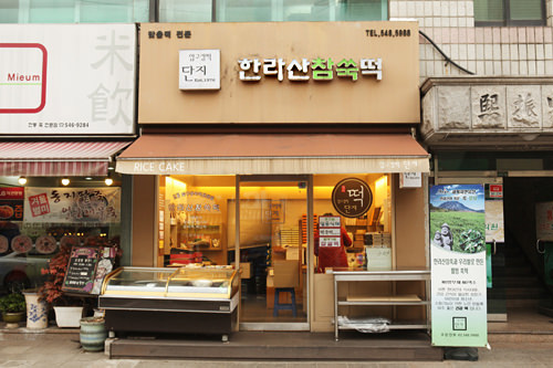 「タンジ」は韓国の行事に欠かせない伝統的なお餅を販売しているお餅専門店で、1976年からの「伝統の味」を維持しています。チャルトッ(もち米餅)やソルギ(蒸し餅)、薬食(ヤッシッ、韓国式おこわ)など約20種類を取り扱い、防腐剤や化学添加物、着色料を一切使わず、厳選天然よもぎなど素材にもこだわった「健康によい味」が特徴です。毎日早朝からお餅づくりをしていて「新鮮さ」も人気の秘訣ですが、全てのお餅が準備できるのがオープン時間から2~3時間後なので、お昼前に訪問すれば、たくさんの種類のお餅が購入できます。狎鷗亭(アックジョン)駅近くにあり、大企業の役員や政治家らもお歳暮等に良く利用しています。