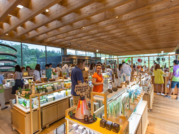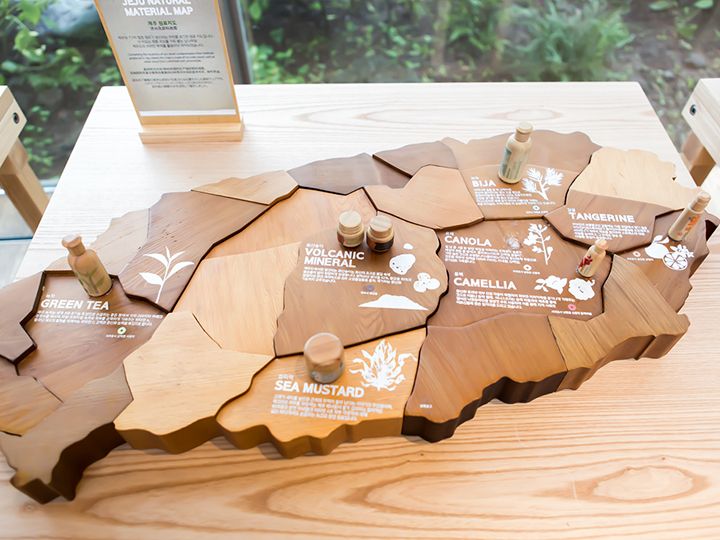 済州島(チェジュド)南部の西帰浦(ソグィポ)にある「innisfree JEJU HOUSE(チェジュハウス) 済州島本店(チェジュドポンジョム)」は、五感(視覚・嗅覚・触覚・聴覚・味覚)を満足させるブランド体験館。済州島の天然原料を用いたコスメが買えるだけでなく済州島で採れた食材を利用した食事や天然石鹸作りなどが楽しめます。四方を囲むガラス壁からは外の景色が一望でき、ゆったりと落ち着く空間になっています。済州国際空港からはタクシーで約53分。済州島に行かれる際には是非立ち寄ってみてはいかがでしょうか。