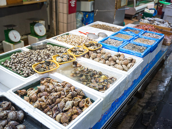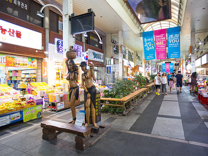 済州島(チェジュド)南部の港町・西帰浦(ソグィポ)に位置する「西帰浦毎日(メイル)オルレ市場」は、済州島を代表する在来市場の1つ。済州島産の農・水・畜産物をはじめ、日用品や工芸品など約500店舗が入店しており、地元の人だけでなく観光客にも人気です。特産品であるハルラボン(デコポン)のジュースやチョコレートなどお土産にもピッタリな商品をゲットできるほか、済州島グルメの代表格・黒豚の串焼きや、餡入ヨモギ餅を小豆で包んだオメギ餅といった済州島ならではのグルメにも出会えます。また大型の室内駐車場を完備しているのでレンタカーでの乗り入れも便利。アーケード型市場のため天候にも関係なくショッピングを楽しめるでしょう。