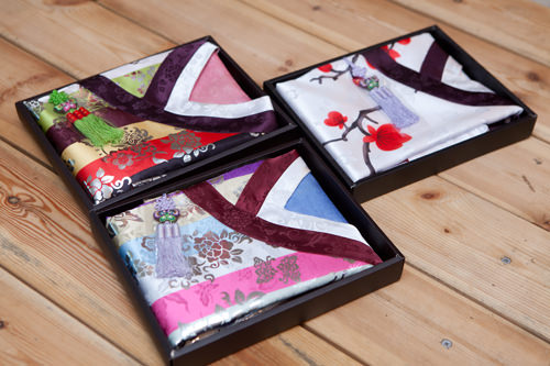 コスメや菓子・酒・調味料などの他、ちょっとハングル柄な携帯電話カバー、財布や名刺入れ、ハンカチやスカーフ、韓服風エプロンなど、お土産や自分用の買い物に良さそうなアイテムが沢山あります。