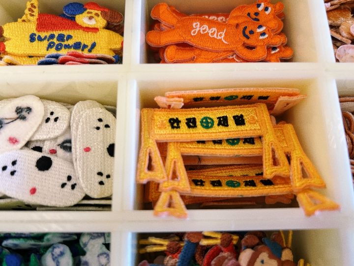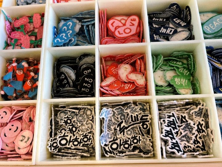 ハングルのワッペンも文字を組み合わせて自分の名前を作ったりもできるのでオリジナル商品作るのにもすごく色々考えられて楽しいです。