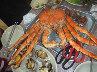 今回は、あえて移転していない方の店舗に行き、古いほうの食堂で食べてみました。うに、あわびは、刺身と蒸し、タラバ蟹を蒸したのを食べ3人でビールを飲み楽しんで来ました。今回は、食べて飲んで調理代で、200000w以上になりましたが、美味しかったです。食堂には地元の人たちが鍋、刺身を食べたりしていましたが、日本人は、私たちだけでした。食堂は、靴を脱いで袋に入れ席まで持っていきますが、歩いていると所どころ床がぶくぶくしていました。