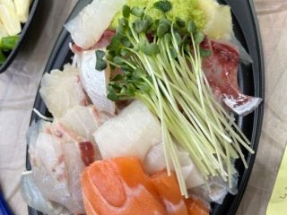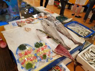 1階の買い物は、日本語がしゃべれない人の方が安心に思えました。47番のお店で刺身を買いました。刺身は、写真にあるやつから選び、サーモンはいらないとか、アレンジしました。スモールサイズで5000円でした。途中から、近所の店の人が日本語通訳をしてくれました。