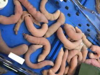皮も剥かずに身は細く切られて出てきます。アニサキスが