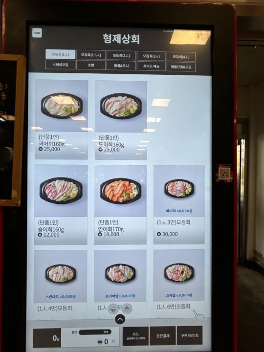 4人で行きました。刺身以外でと、アワビが大きめの3つで2万won