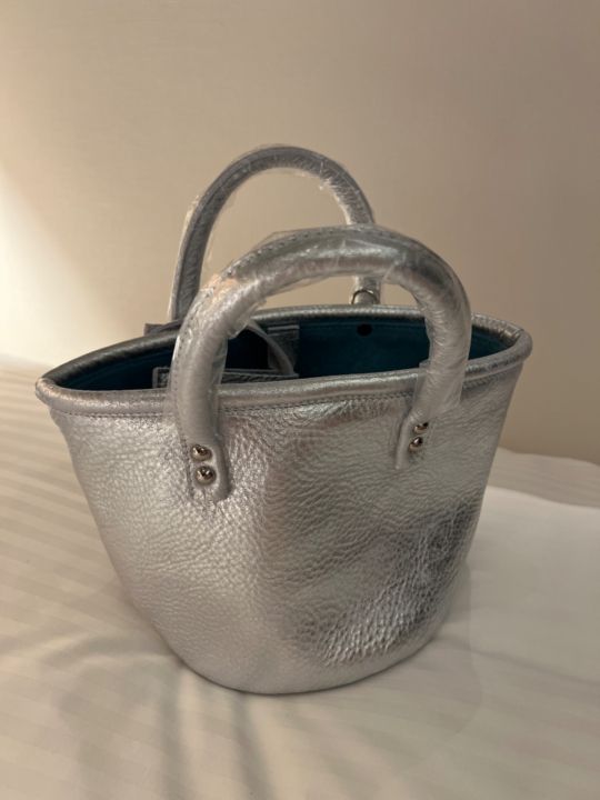 ずっと欲しかったミニバケツトートのSサイズに好きな裏地と金具をつけて、付属のポーチには名前を刻印してもらいました。