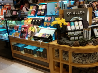 ロッテ百貨店本店の地下1階に、「雙磎名茶」など茶葉の売場が集まったコーナーがありますが、ここになぜかロールケーキのケースがあります。じつは、緑茶ロールケーキが名物の「o’sulloc」の売場です。