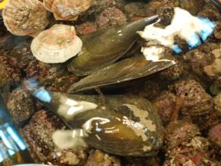 一階でアワビ、ホタテ、サザエ各2個を購入。