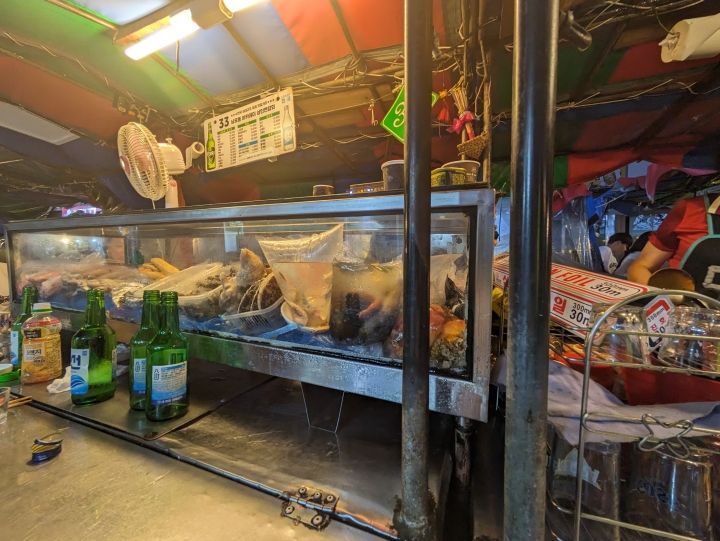 ロブスターを食べたかったのでお店(日本語○)でいくらか聞くと、なんと1匹15万ウォン(約1万5千円!)。電光掲示板通りの値段はさすがに高すぎです。当方少し韓国語が喋れるので交渉したのですが、まったく値引いてくれず他の店に。