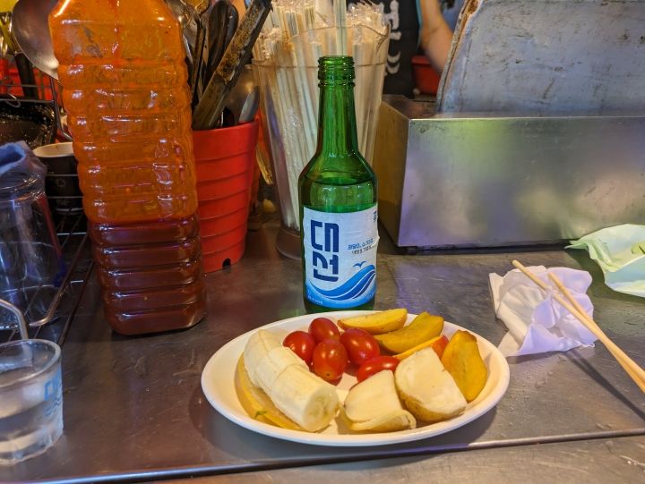 日本でちょっと立ち飲みに寄る感覚で飲める雰囲気の良い屋台、一人旅にはこうした屋台があるとほっとします。酒代を₩1,000多く払っているのはささやかながらコモへの気持ち良い接客に対してです。