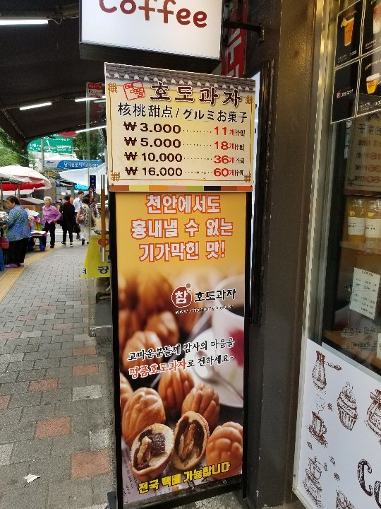 友達は韓国語がまったく話せないので、指で「12」と示して12個入りが買いたかったのですが、おばちゃんは意味が分からず、「はあ!?」とご立腹。外に貼ってあるメニューを指さそうとしても、張り紙は店の中からは見えないので、指さしてもムダ。