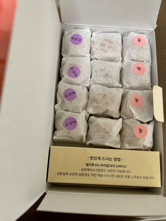 ようやく12個入りと通じたらしく、おばちゃんは箱を組み立てたので「ノーボックス、ペーパーバッグ」と言ったのですが、通じず。友達が翻訳アプリを使おうとスマホに入力していたら「빨리빨리말하라!!」と怒鳴られました。ようやく12個入りの袋入りと通じたらしく、おばちゃんは小豆あんを鷲掴みにして袋にどんどん入れていたので「ミックス」と言うと、さらに激怒。