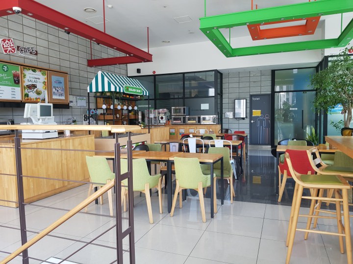 2階は、トシ楽(弁当)カフェというコーナーでして、コンビニで購入しました弁当やカップラーメン等を食べることができますよ。電子レンジやお湯もございます。