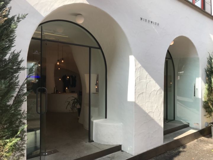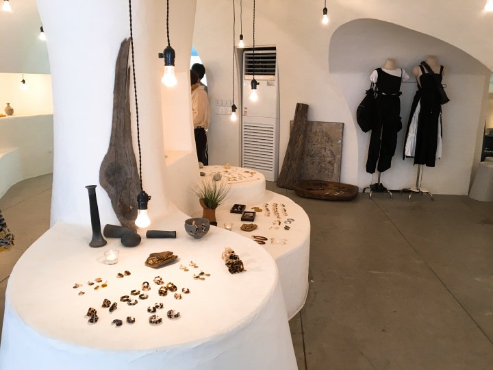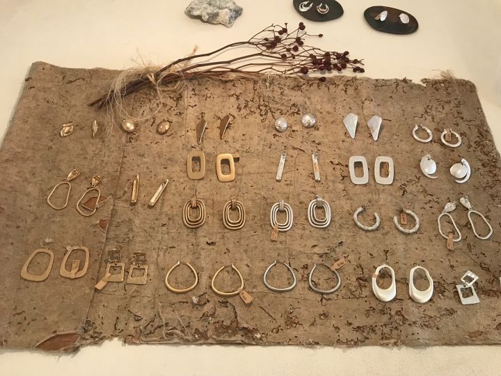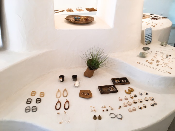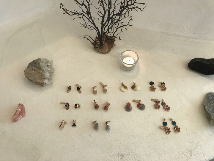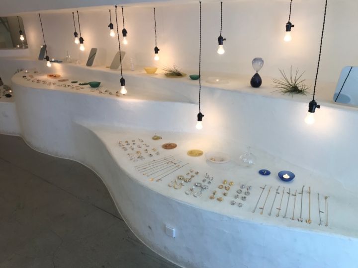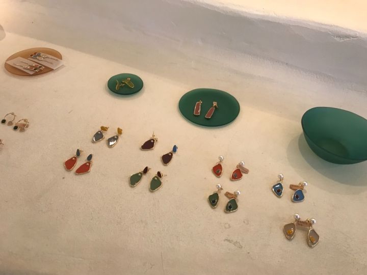 洞窟の中を進むような空間に、ゆったりと飾られたピアスたちがとても洗練されています。