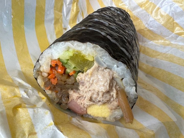 >帰国日にツナとチーズキンパを購入。アルミホイルで包んでくれるので、自宅に帰って食べても乾燥せずに美味しく食べれました。