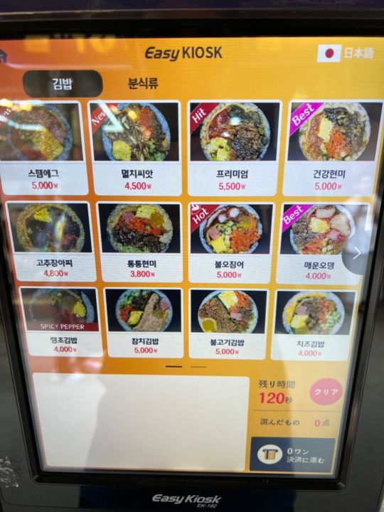 何とかスパムエッグキムパッと玄米のキムパッを注文。