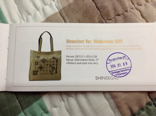 12月から新世界百貨店で10000ウォンの商品券プレゼントをやっていますが、