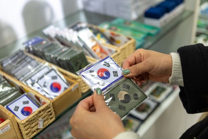 特に軍人の服に貼る韓国の国旗と平和のステッカー、そして戦闘食糧(軍人用)、豆アイスクリーム...