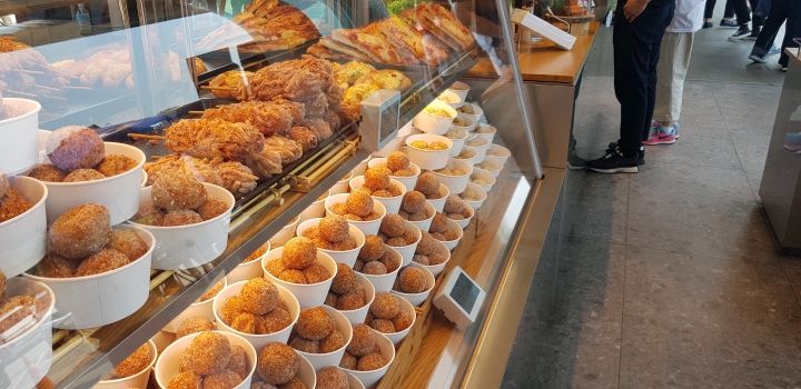 パリバケット加平サービスエリア店では、松の実ラテや松の実ドーナッツ(味はそうでもなかった)など、クッキーサンド以外にも加平ならではの商品がありました。また、サービスエリアらしく揚げジャガイモなども売っています。