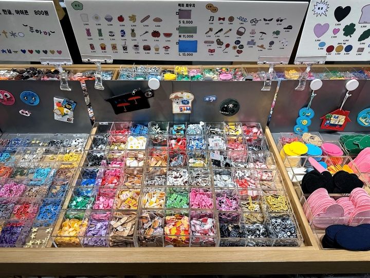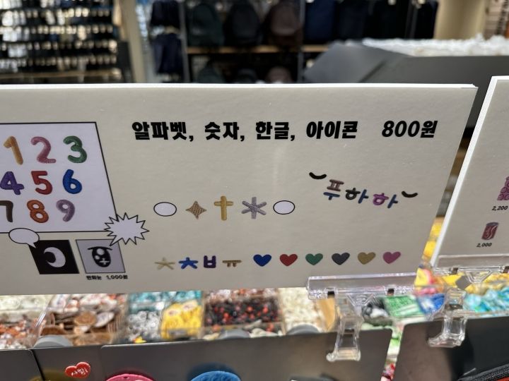 2階は服で、3階がステーショナリーコーナー。韓国語が書かれたスタンプとか、ポストイット、マスキングテープとかが見ていて楽しかったです。3階奥に刺繍コーナーがあって、名前は1文字800ウォン、下地は大きさによって値段が違ったけど4000ウォン弱くらいだったような。ほかの支店では、このコーナーはみかけなかったので、江南店だけのサービスかもしれません。