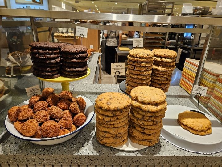 お店のスペース自体は小さめですが、買わずに通り過ぎるのが難しいほどおいしそうなスコーン、パイ、クッキー、クランブルが所狭しと並んでいます。