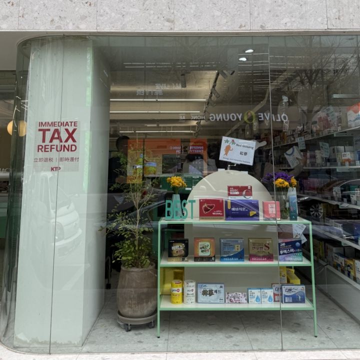 地下鉄「弘大入口駅」8番出口から徒歩1分の距離にあり、アクセスがとても便利です。観光スポットにも近く、旅行中にちょっと立ち寄るにもぴったりな場所です。お店の前には「オリーブヤング」もあるので、オリーブヤングでは手に入らない薬や、韓国でしか買えない人気商品を一緒にチェックできますよ。