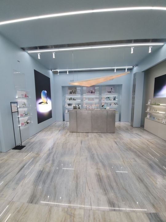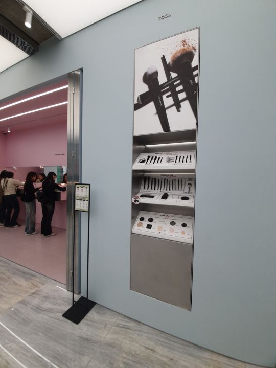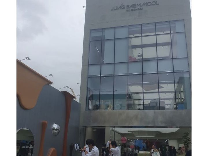 ガラス張りの3階建ての建物で、1階は展示とイベントのスペース、2階に商品がある造りになっています。