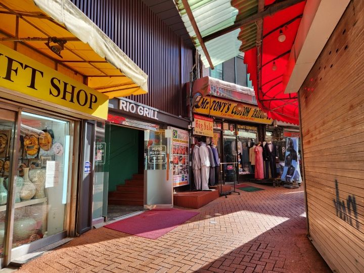 …話がずれましたが、現役の米軍基地がすぐそばにあるだけあって、この国際市場もアメリカの軍人やその家族の日常を感じられる場所です。韓国人が絶対使わないような巨大なタオルを売るお店や、黒人の髪質に合わせたカツラを売っているサロン、また「外国人専用(韓国人立入禁止)」と書かれたクラブもありました。レストランのメニューも英語が基本で、下に小さく韓国語が書いてあるという具合。かつて米軍基地があり、いまは観光地として人気の梨泰院とは明らかに異なる様相でした。
