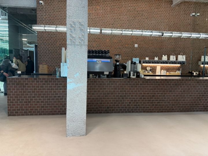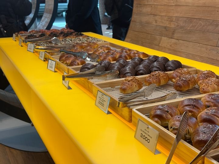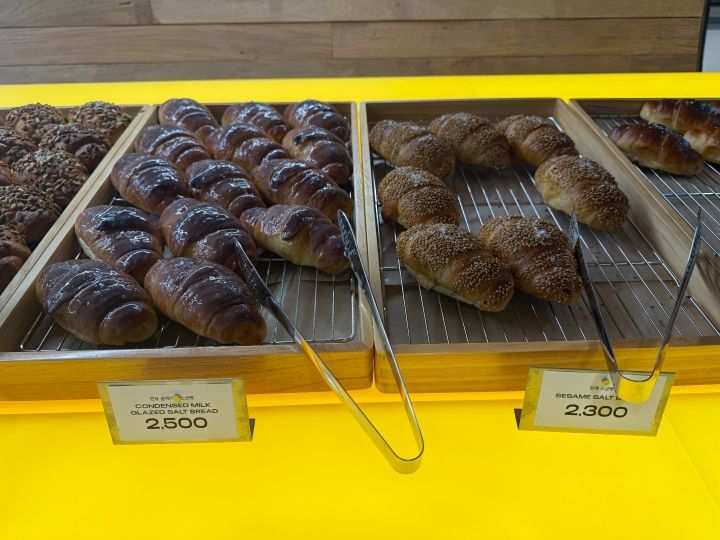 左側の入口が3階カフェと4階屋上に行く入口で、3階のカフェのデザートコーナーは塩パンがほとんどでした。4階もガラス張りになっているところが多いので、フォトスポットとしてこれから有名になっていきそうです。