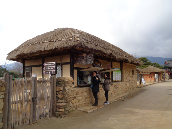 ・朝鮮時代に作られた平城が復元された観光地でありながら藁葺屋根の家の中に人が住んでいる。