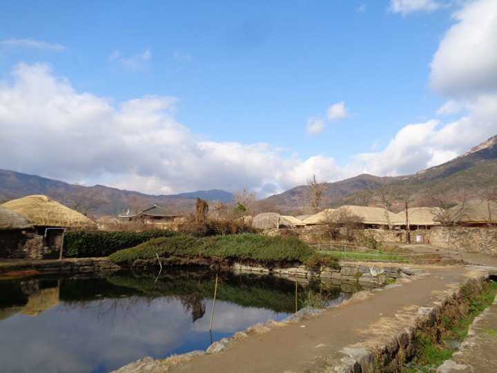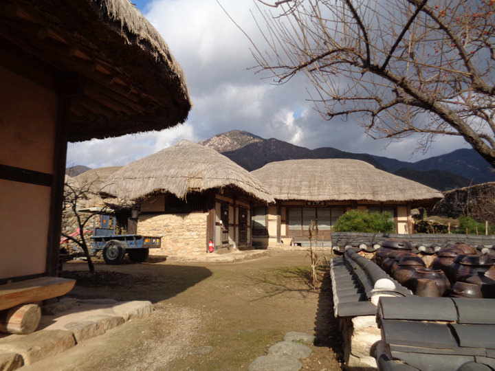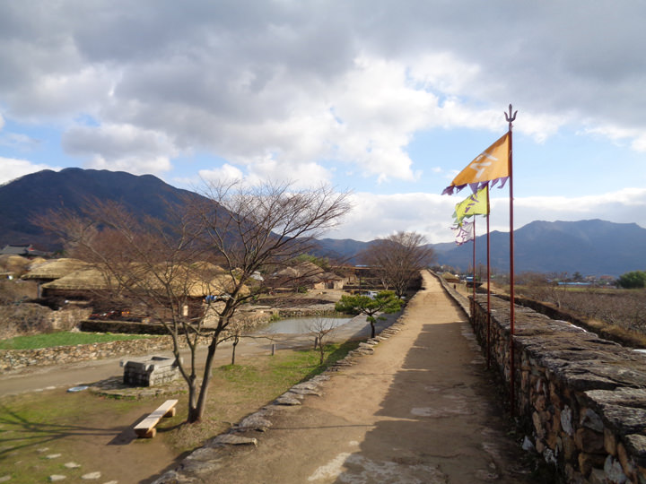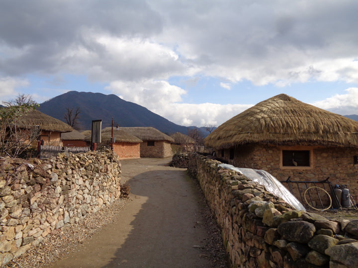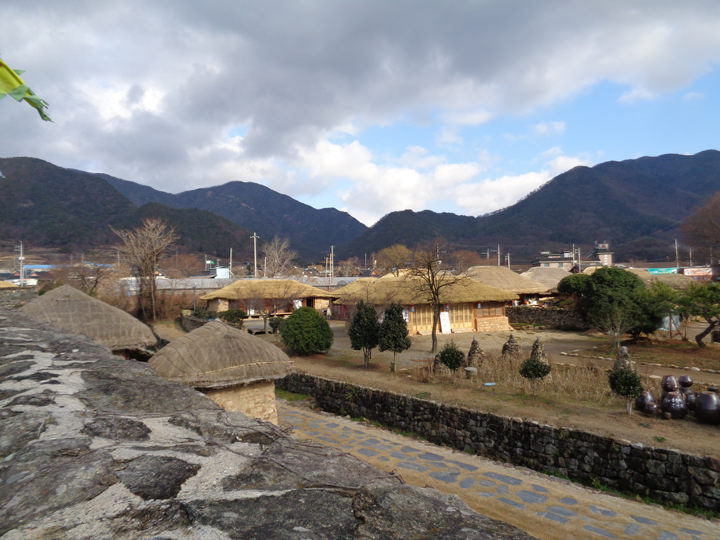 かねてより訪れてみたかった順天の民俗村を訪問しました際の写真です。冬はやや色合いが薄く、藁葺き屋根の色と同化しており、寒かったのもあり人の気配もあまり感じられませんでしたが、風情のある場所でございました。家々は手入れがされていますが、周辺を囲う城壁等は昔ながらの雰囲気が感じられ、趣きある良い空間でした。