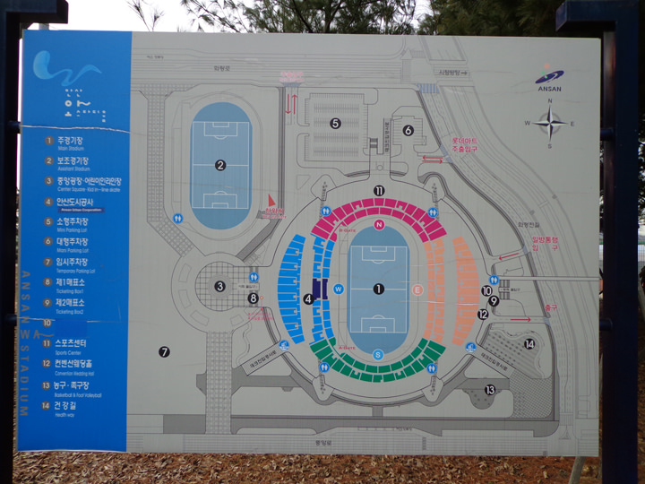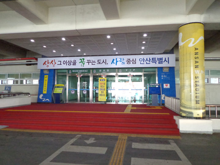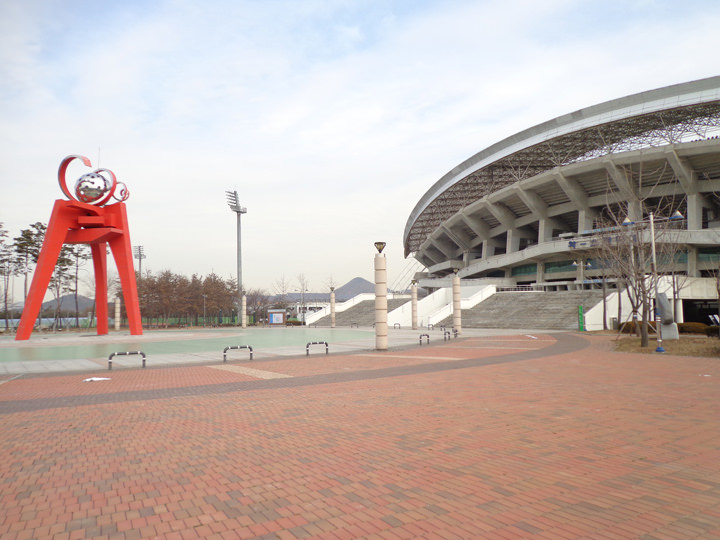 京畿道(キョンギド)の南部、安山(アンサン)市にある「安山ワースタジアム」は陸上トラック付きのスタジアムです。現在は主に、韓国プロサッカーリーグ・Kリーグに所属している「安山(アンサン)グリナースFC」のホームスタジアムとして使用されています。他のスタジアムとは異なり、1,128億円の予算を投入して、2006年に完成した巨大なスタジアムなので、Kリーグのみならず、サッカー韓国代表の親善試合など国際試合の会場としても使われています。「ワー(WA~)スタジアム」とは一風変わった名称ですが、競技を観戦している市民の歓声や、「Welcome to Ansan」、「World Ansan」の略称など、様々な意味から「ワー」と名付けられました。