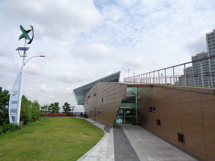 「峨嵋山展望台(アミサンチョンマンデ)」は、釜山(プサン)南西部にある洛東江(ナットンガン)河口部に位置しています。建物は横から見ると鳥が座っている姿、上から見ると砂の塔2つが、くっついて見えるというユニークな設計になっています。館内の2階には洛東江周辺の地形・地質に関する4つの展示館があり、3階に展望ホールがあります。また建物の外にも展望デッキがあり、ここから眺める夕日は格別の美しさ。金海(キメ)国際空港からも近く、空港へ降下する飛行機も見えるなど写真愛好家の間で人気のスポットになっています。