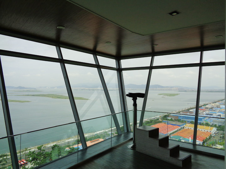 洛東河を見渡せる展望台施設で、建物がとても綺麗です。