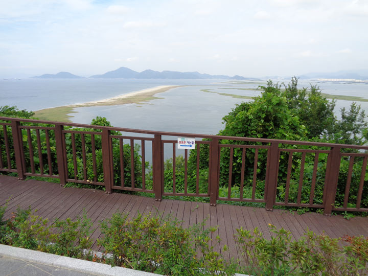 右手に渡り鳥の飛来地として知られる乙淑島、正面に加徳島、左手には多大浦海水浴場があり、遥か遠くには巨済島が霞んで見えます。