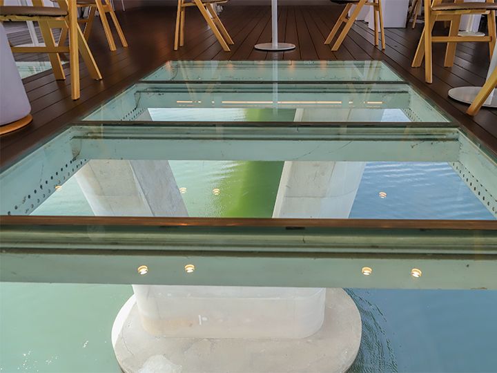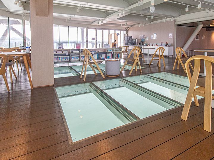 漢江(ハンガン)に架かる橋梁のうち、東側の「広津橋(クァンジンギョ)」には、橋の下にぶら下がった面白い施設があります。2009年にオープンし、ソウル市が運営・管理している施設で、2009年の大ヒット韓国ドラマ「アイリス」(イ・ビョンホン、キム・テヒ主演)のロケ地になり、当時一気に注目を集めました。現在は無料の休憩スペースとして開放されていて、たまに美術展示や演奏会などが開かれます。ガラス張りになっている床からは、川の流れが真上から眺められ、窓からは展望タワー「ロッテワールドタワー」も良く見えるなど、漢江ファンなら癒されること間違いなし!?有料(現金または口座振り込み)でセルフカフェも利用できます。