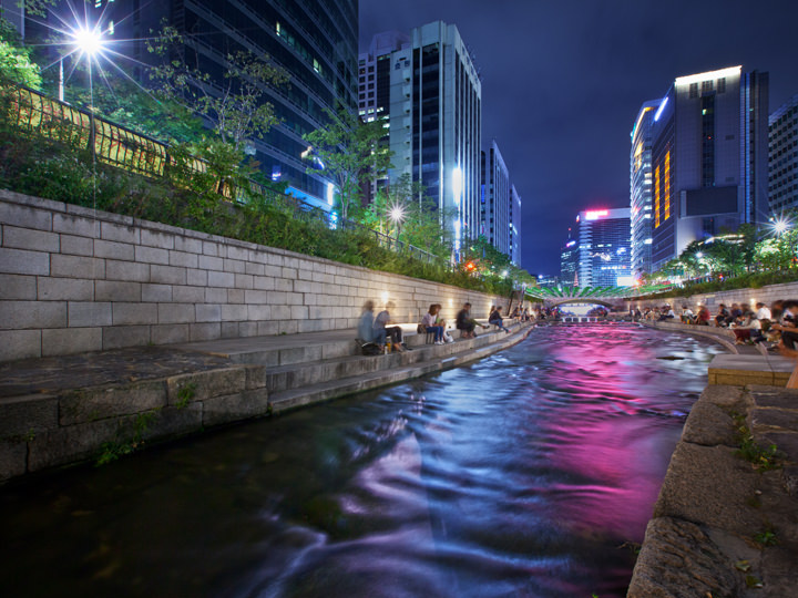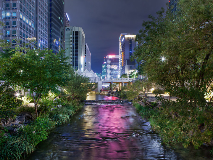 ソウル都心部の憩いの人工河川「チョンゲチョン」