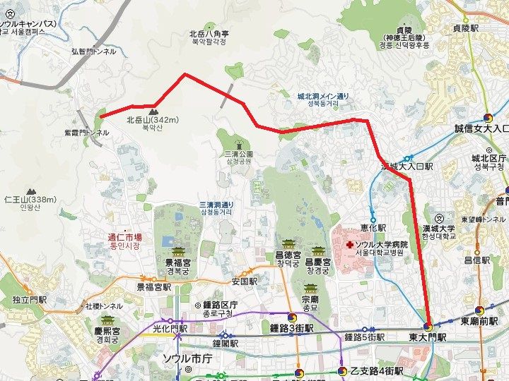 【ソウル城郭巡り 新羅ホテル、奨忠体育館付近→臥龍公園コース(恵化門から臥龍公園まで)】