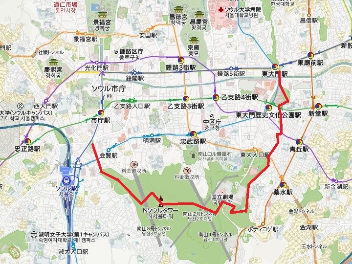 ソウル城郭巡り 新羅ホテル、奨忠体育館付近→臥龍公園コース (新羅ホテル、奨忠体育館付近から光熙門まで)