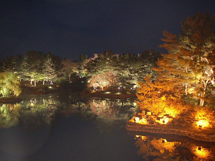 キリッと晴れた夜ならもっと水面にもライトアップが映されて見応えありかもですね。