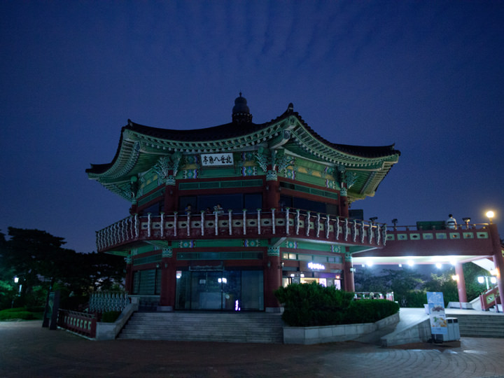 ソウル市中心部の北部にそびえる北岳山(プガッサン)には「北岳スカイウェイ」と呼ばれるドライブによい絶景ロードがあります。その道路の中間の見晴らしの良いところに設けられた展望スポット兼、休憩所が「北岳八角亭(プガッパルガッチョン)」で、館内にはスカイカフェ・レストラン・売店などがあります。展望スポットからは北側には雄大な北漢山(プッカンサン)が間近に見え、南側にはNソウルタワーをはじめ、ソウル市内が一望できます。特に夜景がロマンチックで映画やドラマのワンシーンにもよく登場。近くに地下鉄駅やバス停はなく、訪問の際はタクシーになりますが、北岳スカイウェイはタクシーがあまり通らなく不便なので、現地ツアーを利用して手軽に訪問してみましょう。