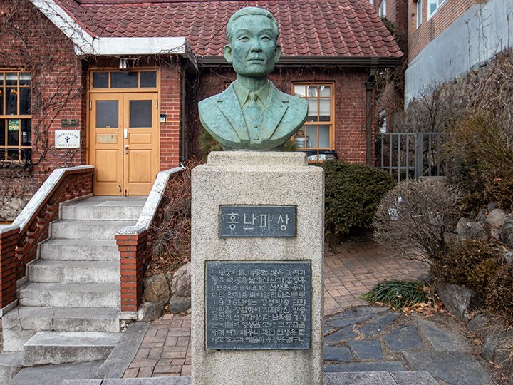 洪蘭坡(ホン・ナンパ、1898~1941)は、日本の植民地時代を生きた作曲家、ヴァイオリニストです。本名を洪永厚(ホン・ヨンウ)と言い、当時の日本名は森川潤。現在の京畿道(キョンギド)・華城(ファソン)市で生まれ、子どもの頃から独学でヴァイオリンを学び、1918年、日本の東京音楽学校へ留学しました。代表曲「鳳仙花」「故郷の春」など祖国を愛する曲を作曲した一方で、日本軍の命令に従って軍歌を作曲したため、親日派のレッテルを貼られながら、晩年をこの家屋で暮らしました。建物は1930年代にドイツ人宣教師によって建てられた洋館で、2007年から入場料無料で観覧できるようになり、1階や地下1階に彼の生涯や、作曲した作品が紹介されています。
