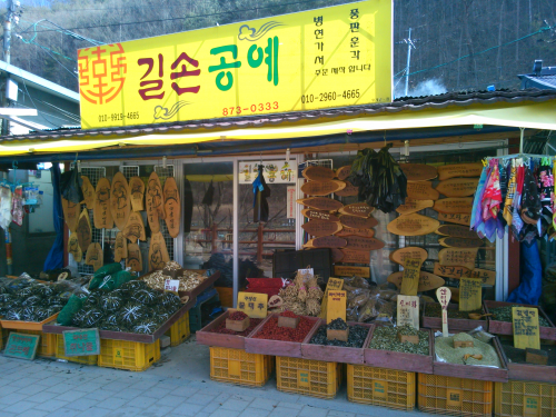 青松郡には、ナツメのマッコリやリンゴのマッコリがあります。また、この寺の門前の食堂街の約半数の店に、松茸のトンドン酒があります。リンゴとツルニンジンのトンドン酒を置く店もあります。聞慶のオミジャマッコリなど、他地域の希少なお酒を商う店もあります。