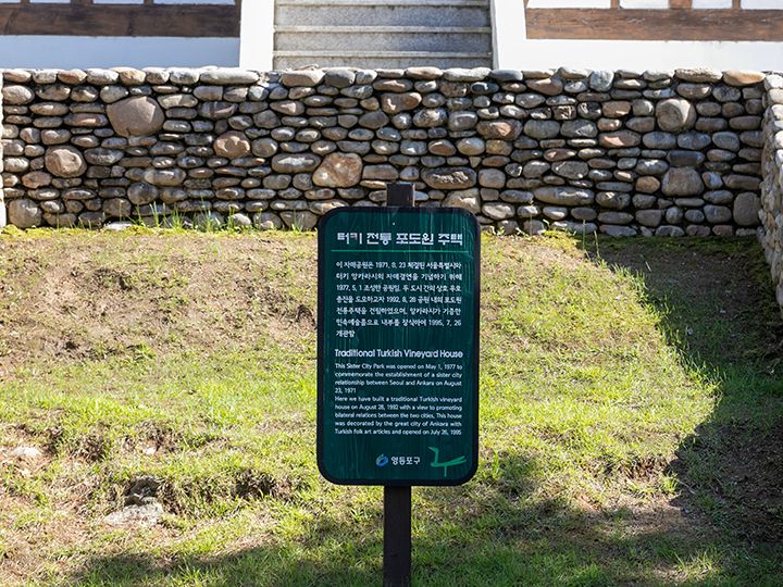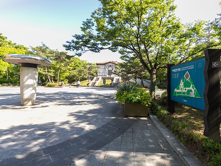 1971年にソウル市と、トルコ共和国のアンカラ市が姉妹都市提携を記念して、トルコの雰囲気が感じられる公園が作られることになり、1977年にオープンしました。「アンカラ公園」の名前でも市民に広く親しまれ、地元の子どもたちが元気に遊んでいる姿なども良く見かけます。公園の中央には、トルコの葡萄園の建物(通称:アンカラハウス)があり、公園のシンボルになっています。韓国ドラマや韓国映画の撮影ロケ地に選ばれることも多く、「ナビレラ -それでも蝶は舞う-」をはじめ、ドラマの1シーンでよく登場したりします。アクセスは地下鉄9号線「セッカン駅」の3番出口を出たら、すぐ右側に公園が広がっています。